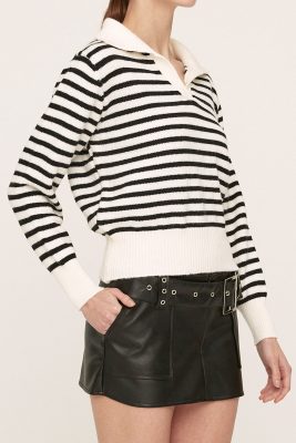 Mia Striped Mini Skirt Front zip, hook close Elastic band on back Product Specification : 100% Polyester Flat measurement : […]